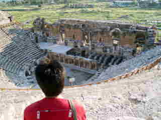 同じくネクロポリスの温泉なのですが、ここの温泉の底にはローマ時代の遺跡が沈んでいます。・・・といってもそんなに広大な温泉って訳でもないです。僕は思っていたよりも大したことなかったかも。ネクロポリスに入る入場料とは別に入場料がいるのですが、僕たちは遅くに行った為、受付に人がおらず、無料でした。トルコはそういう大らかな国です。まぁ、無料だったので得した気分でいい感じでした。 |