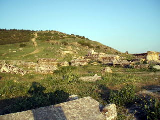 ネクロポリスの写真が多いのですが、個人的にここはかなり僕好みでした。広大な土地に手付かずの遺跡が沢山あり、修復された遺跡とは一味違う歴史を感じました。ここのホールも同じで、古代のロマンが満点につまった個人的にトルコのベスト1かもしれません。ちなみにこのホールのすぐ横で、羊飼いが普通に仕事してました。遺跡と共に暮らす・・・うーん。おしゃれだ。当人はどーとも思ってないみたいだけどね。 |