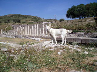 遺跡にいた犬。母犬で子犬がいた。非常に大人しく、ツアー客についていっては食べ物を貰っていた。しかし、自分より先に子犬に食べさせていたりしてちょっと感動。 |
